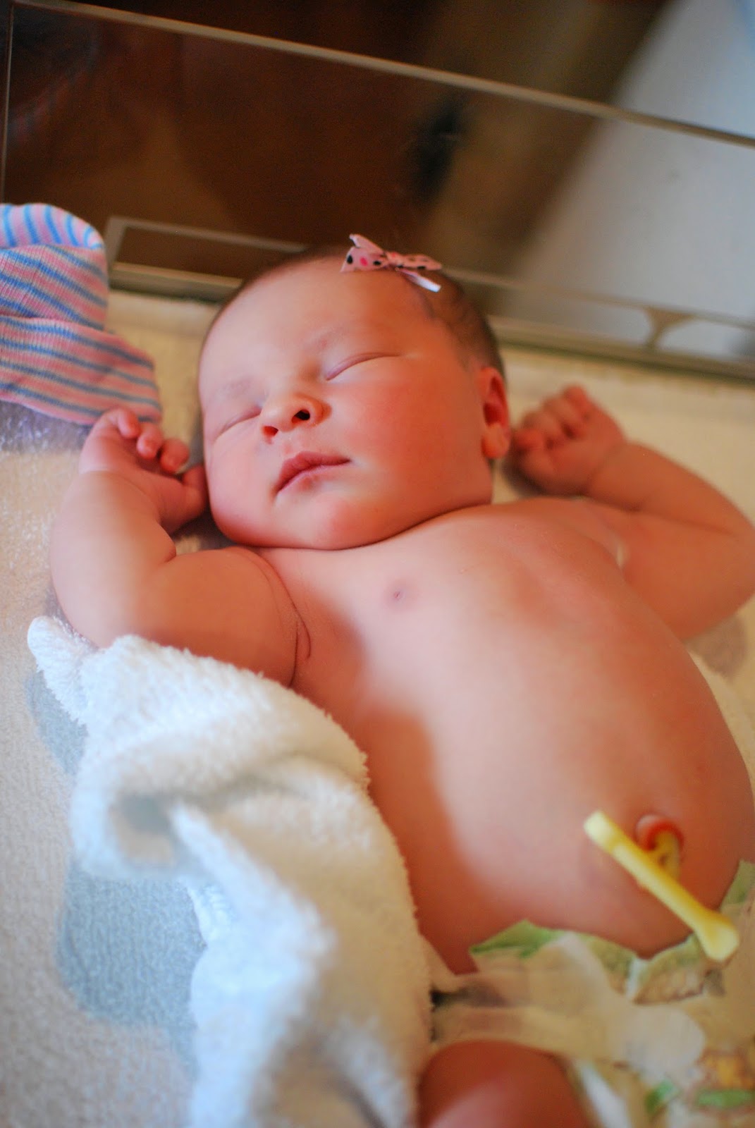 The birthing process was a bit rough on the two of us... she broke her collar bone on her way out :( Apparently everyone in the room heard it "pop" when it broke, except (thankfully) me. She was also a bit too big for me... and we'll just leave it at that... :/